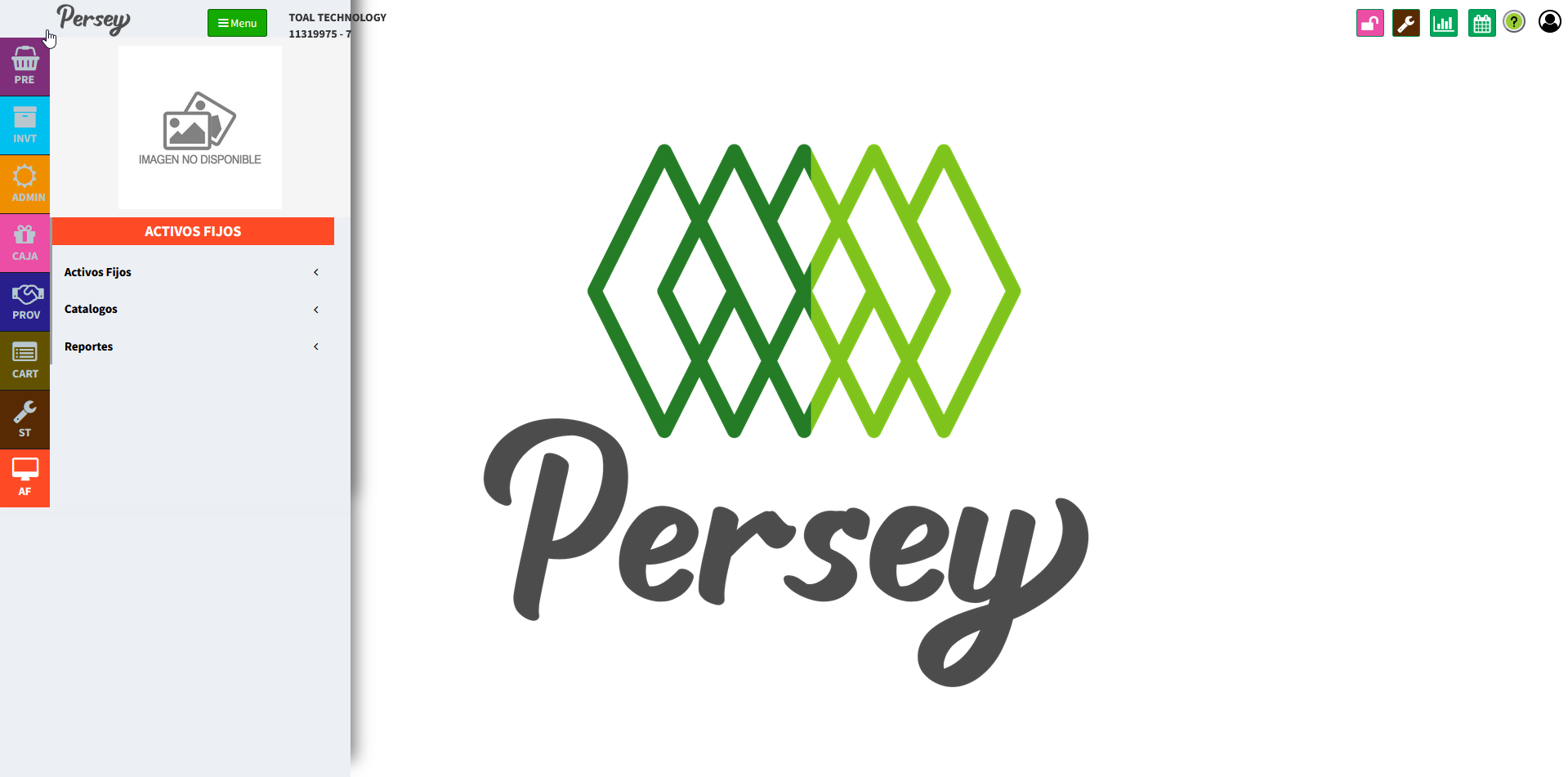 En el menú lateral izquierdo va a encontrar todas las opciones que usted va a poder realizar en el aplicativo de Persey.