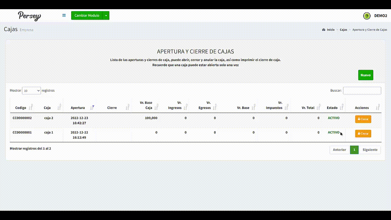 Despues de tener una caja creada, se tiene la posibilidad de cerrar la caja, si tiene mas disponibilidad de caja, tambien podrá aperturar cajas