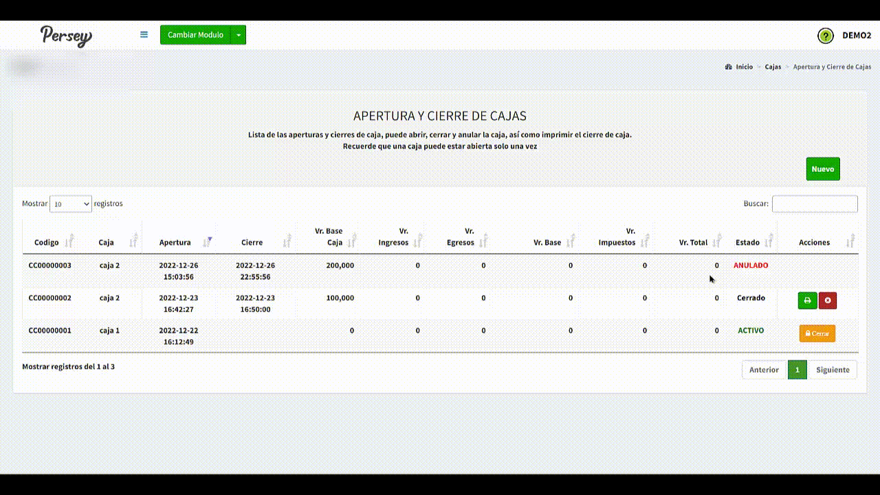 Como se observa en el video anterior, despues de cerrar una caja usted tambien tendrá la posibilidad de tener una visualización en PDF con la información de la caja y ademas anular su cierre.