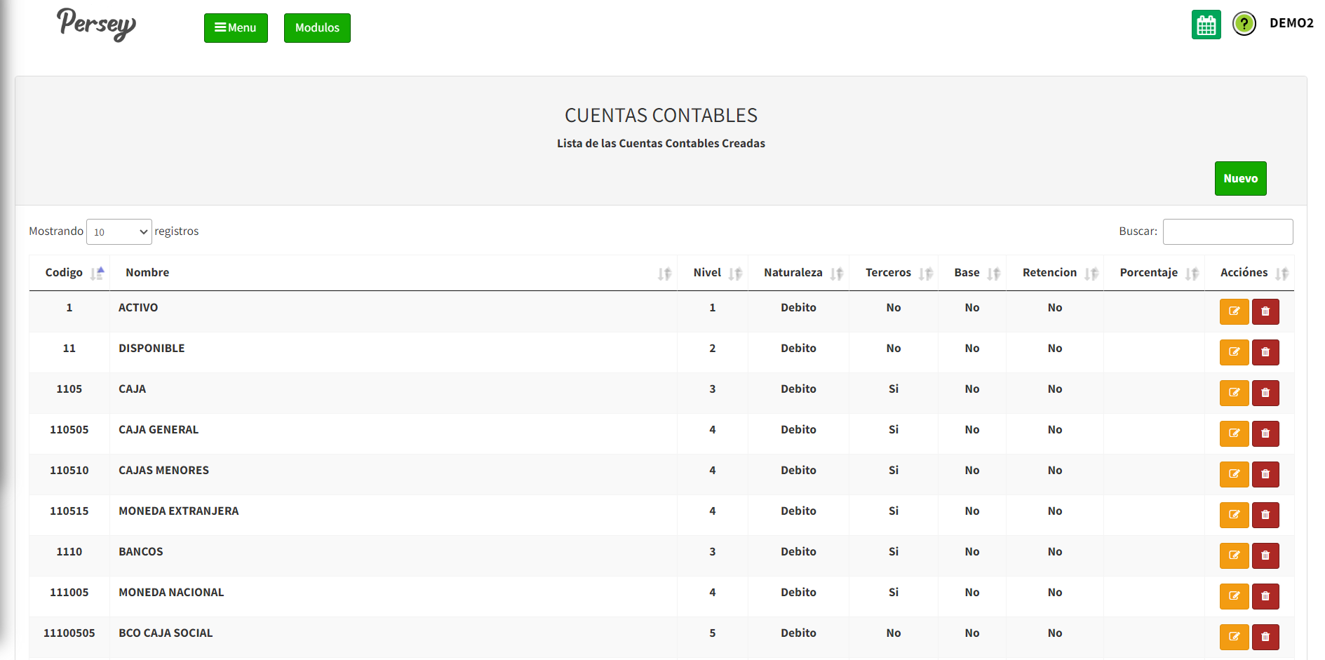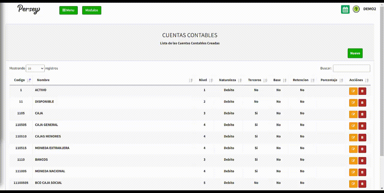 Es de bien saber, que tambien tendrá la posibilidad de editar o eliminar una cuenta contable como se observa en el video.