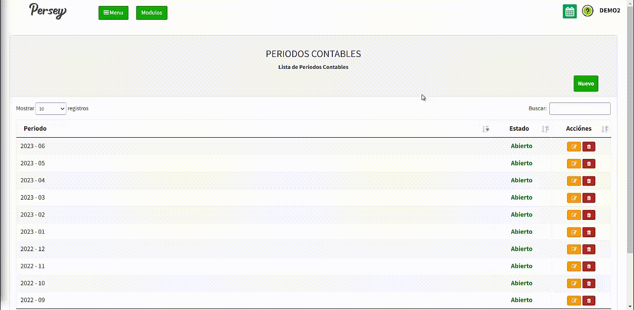 Dirijase hacia la sección de Parametros y elija la opción de Periodo Contable.