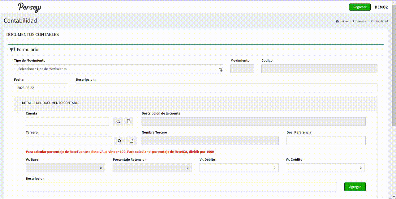 Aquí podras guiarte paso a paso para listar o crear un documento contable.