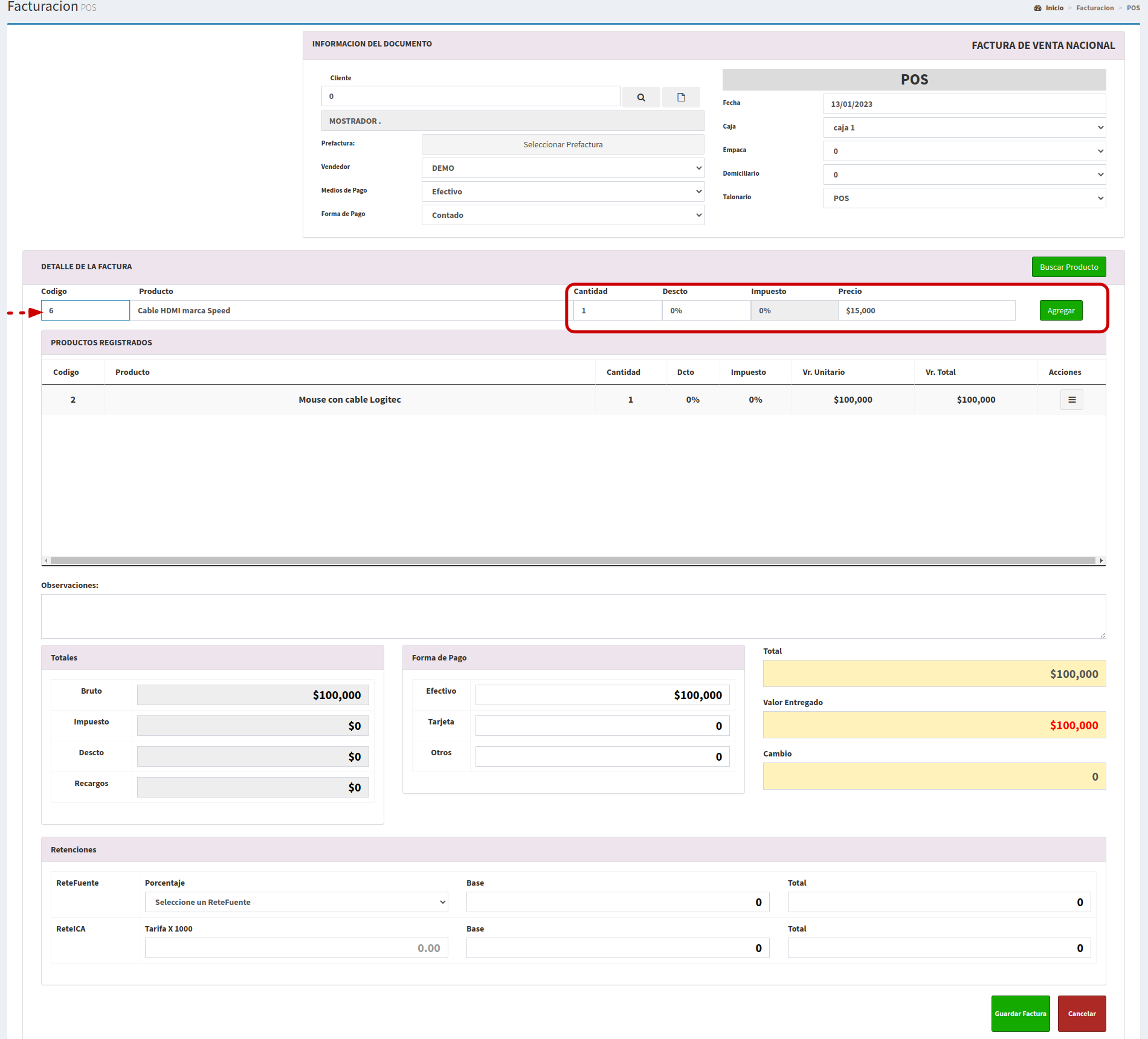 Nota: Es importante verificar los valores de las cantidades, descuentos y precios de los prouctos para proceder a guardarEn caso de no tener prefactura, se deben llenar todos los campos correspondientes teniendo en cuenta los siguientes pasos: