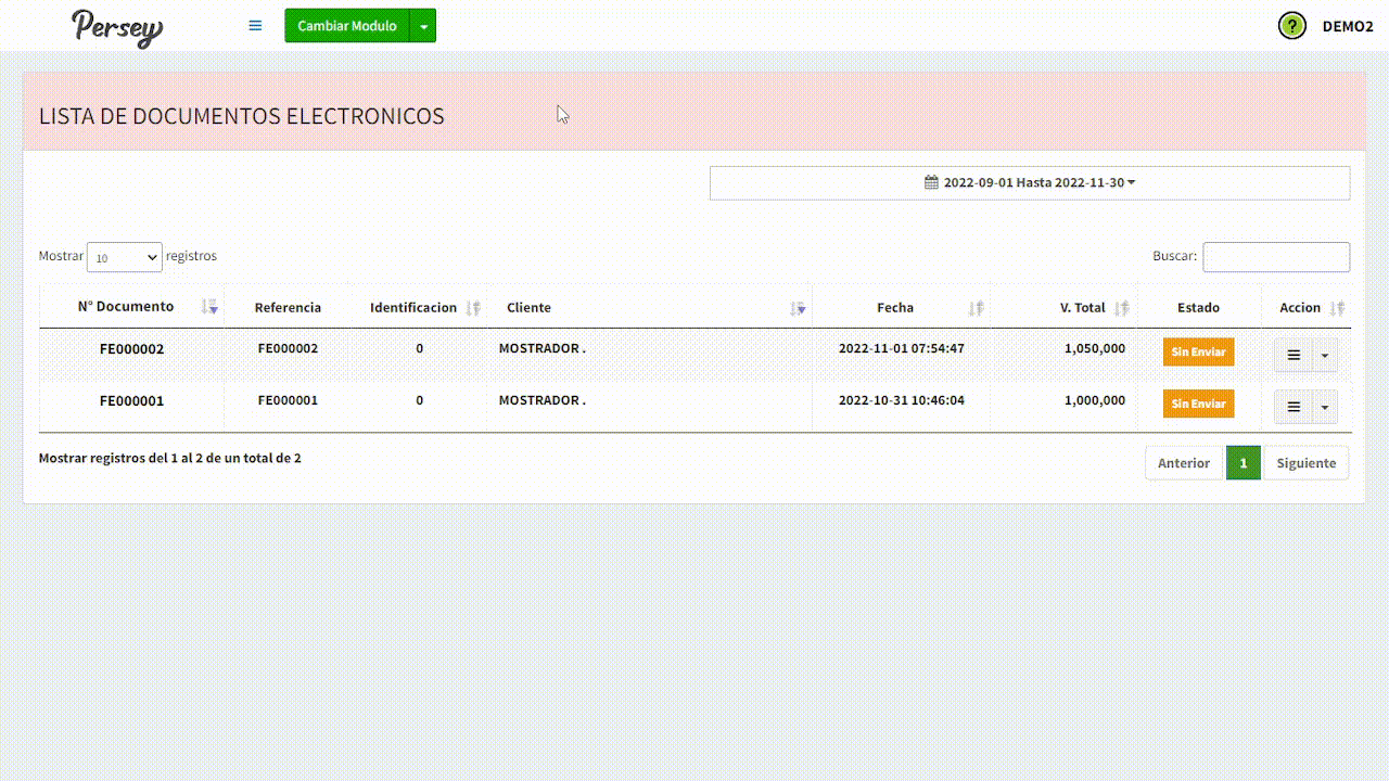 En esta sección podrá visualizar todas las facturas creadas y enviar la factura a la DIAN. Para ello contará con el campo "Estado" y así podrá ver si ya se envió o no.