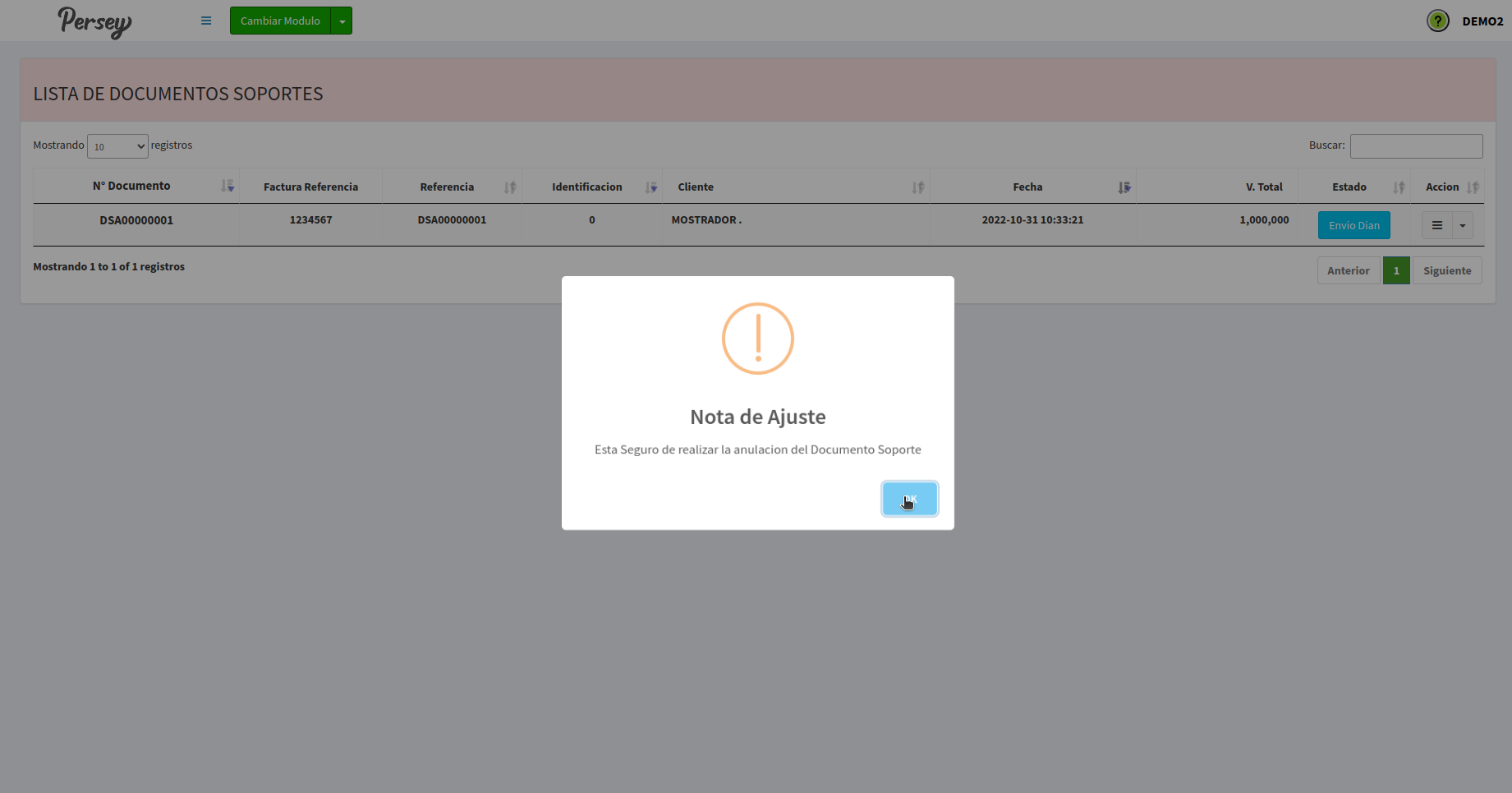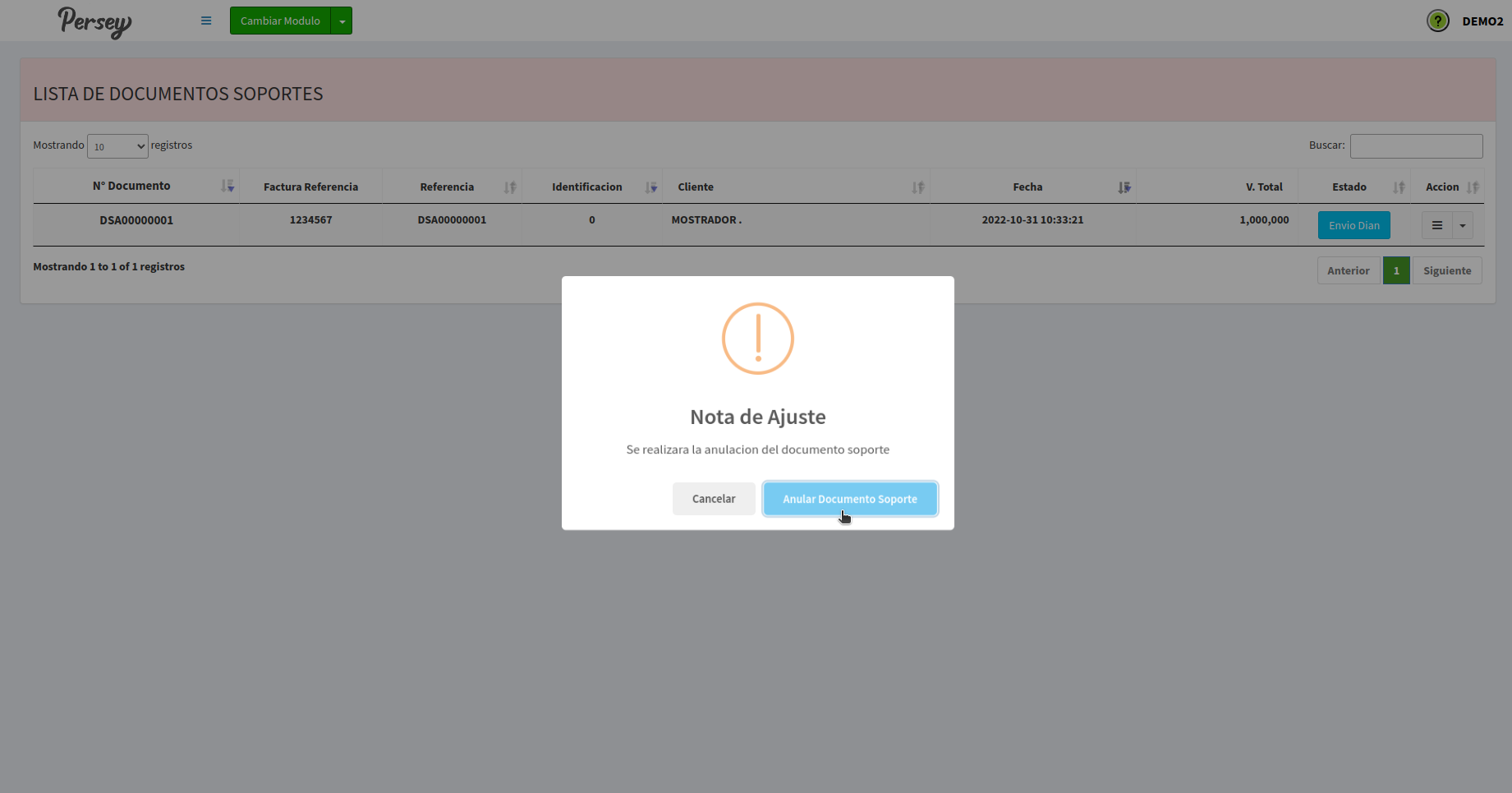 Debe dar click sobre la opción de nota de ajuste, dele "ok" y luego marque la opción "Anular Documento Soporte"