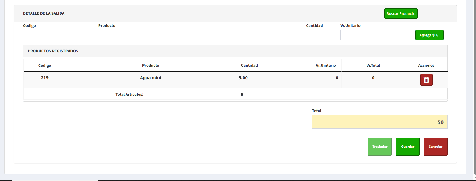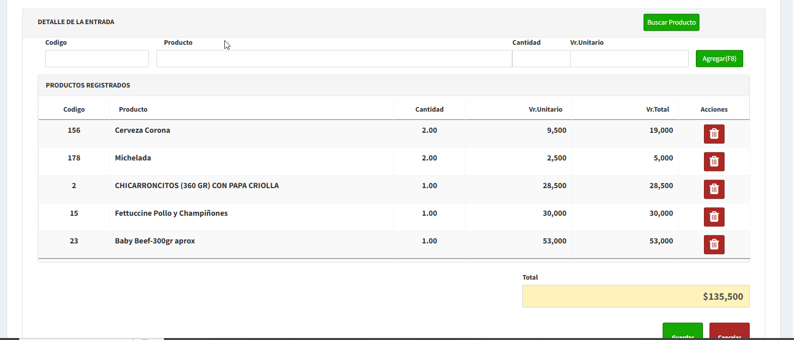 NOTA: El anterior proceso funciona si se cargo una prefactura o si se está diligenciando una factura manualmente.Para eliminar un producto se debe seleccionar la opción de eliminar que corresponde al producto de interes