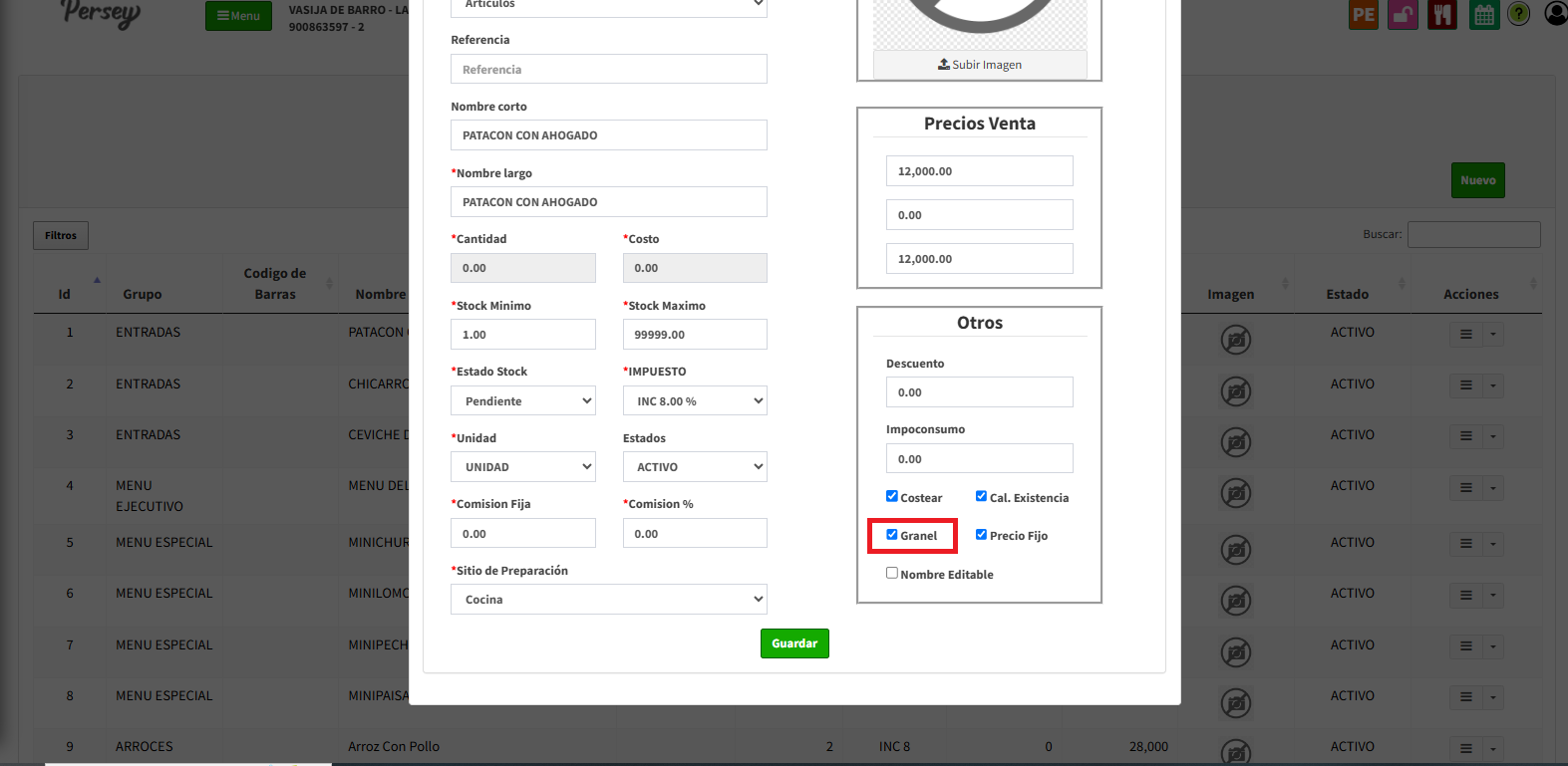 Los articulos que se quieran facturar usando la balanza, deben tener la opción Granel activada (Módulo inventarios - Articulos Carga Agil)