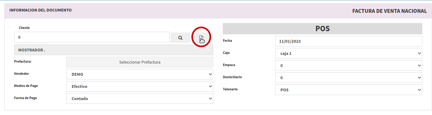 Para la creación de una factura POS es trascendental tener un cliente o proveedor creado con anterioridad. Si no tiene un cliente o proveedor, por favor registre un nuevo cliente o proveedor para dicha facturación; en caso de que ya tenga un cliente registrado, se ignora el Paso 1.