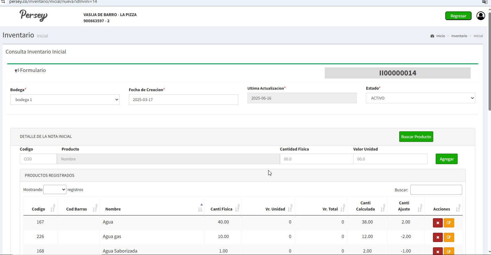 Cuando liste un previo, usted tendrá la opción de agregar, modificar o eliminar sus productos