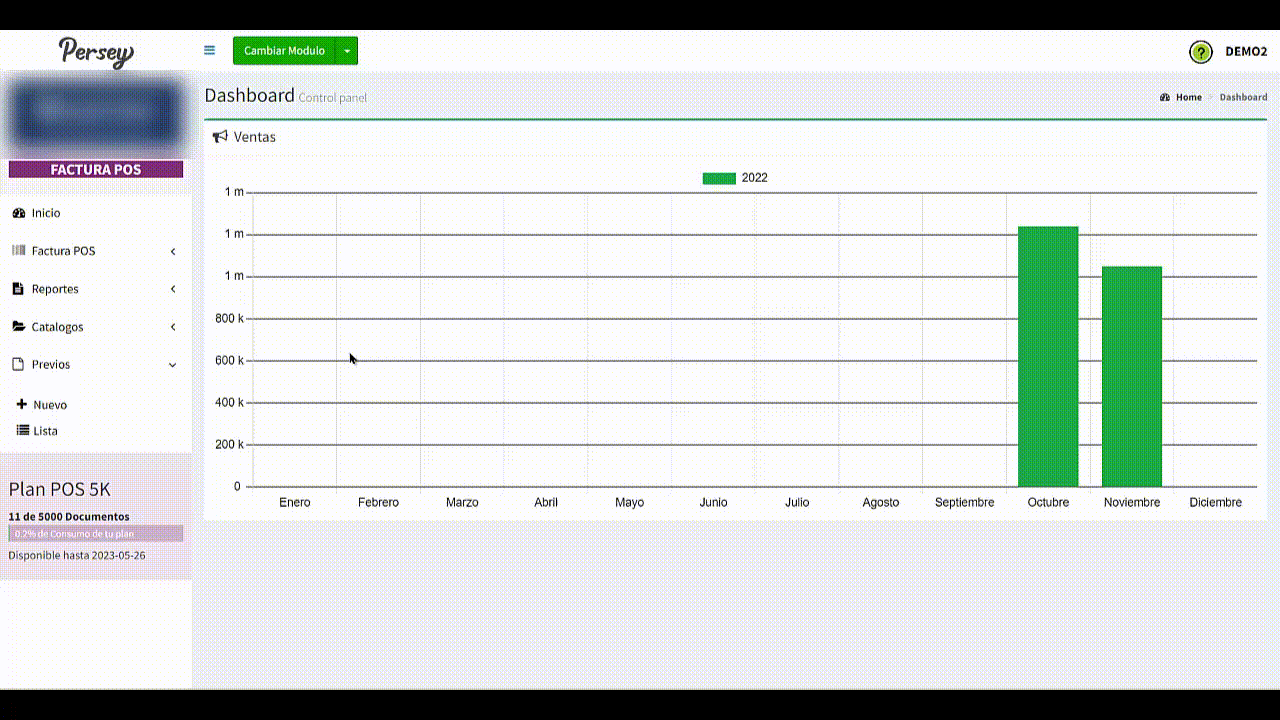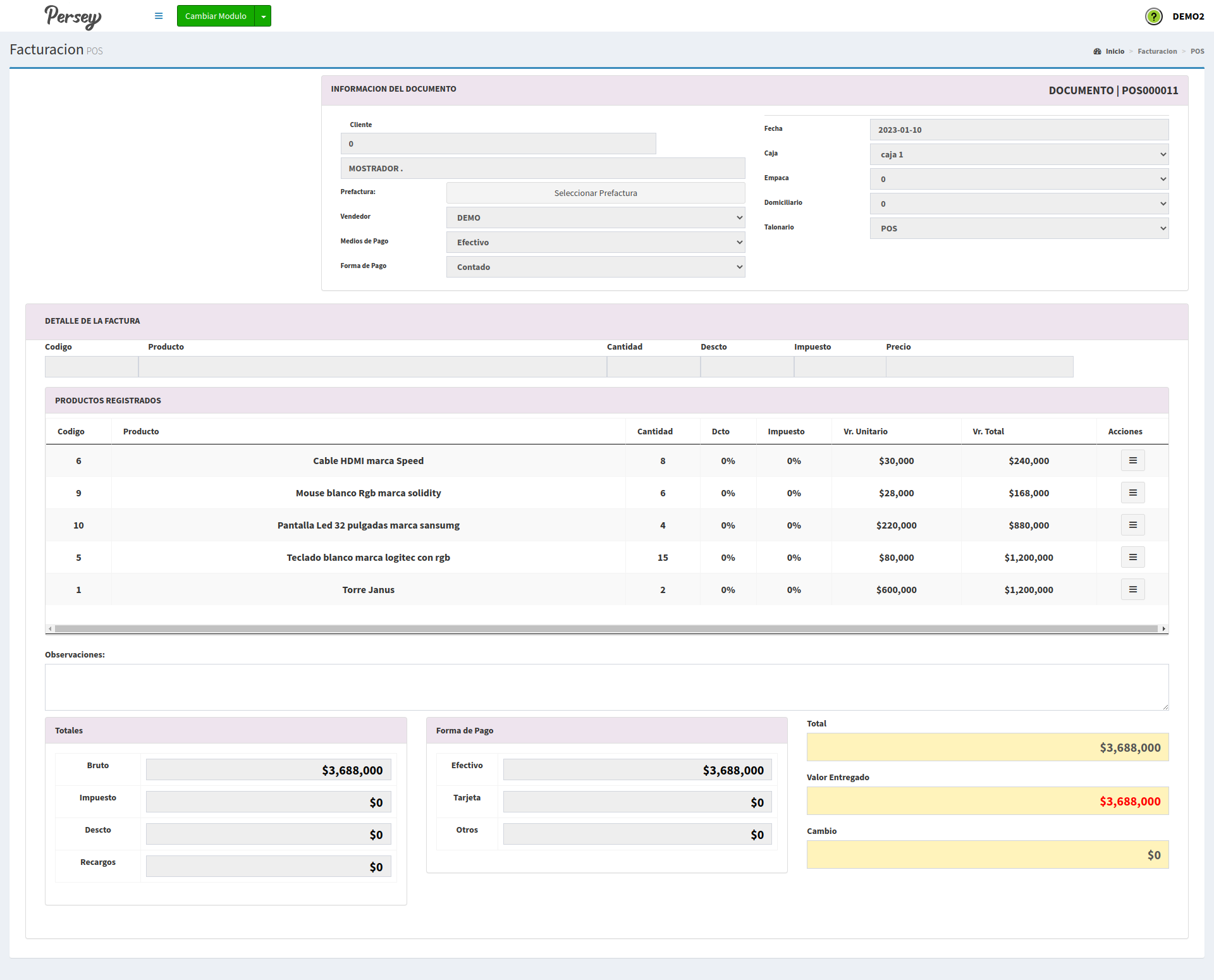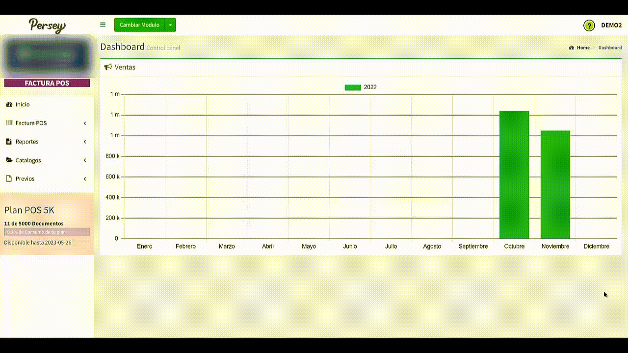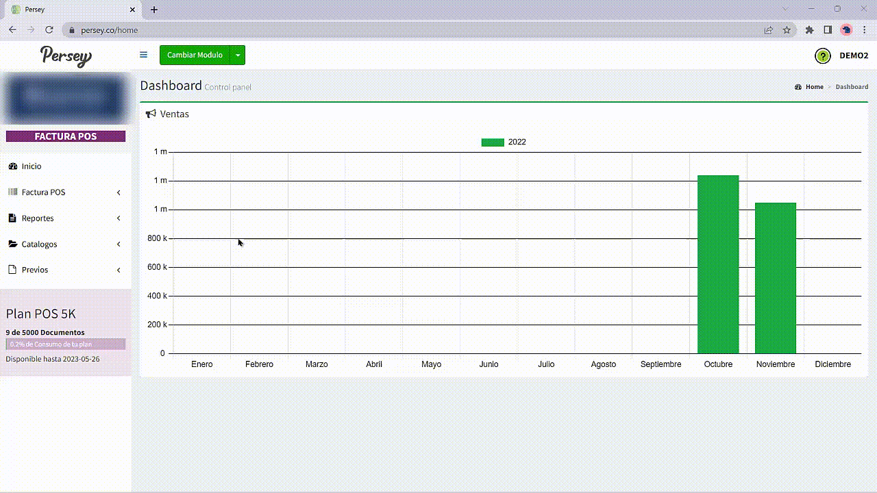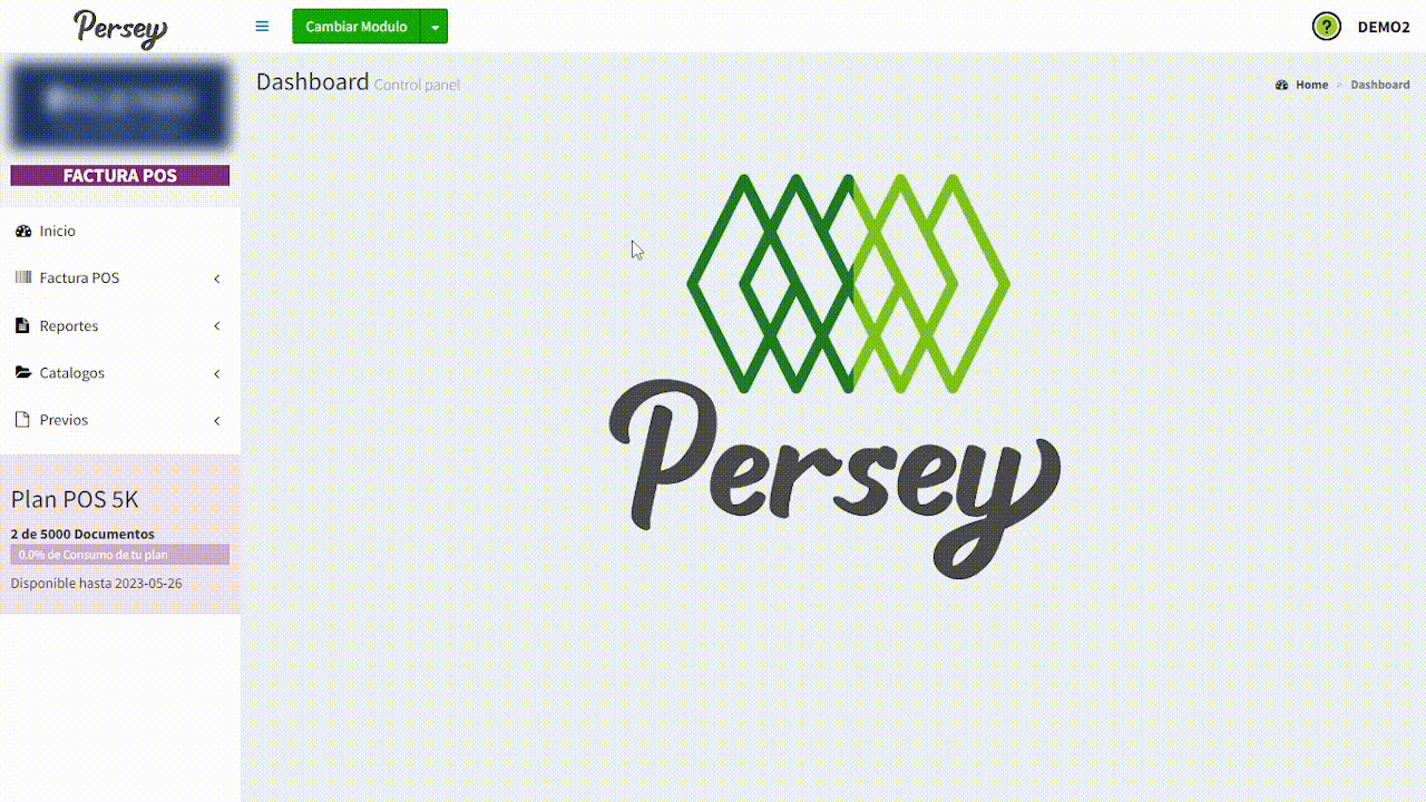 En el menú lateral izquierdo encontrará todas las opciones que podrá manipular en el modulo de Facturacion POS en el aplicativo de Persey.