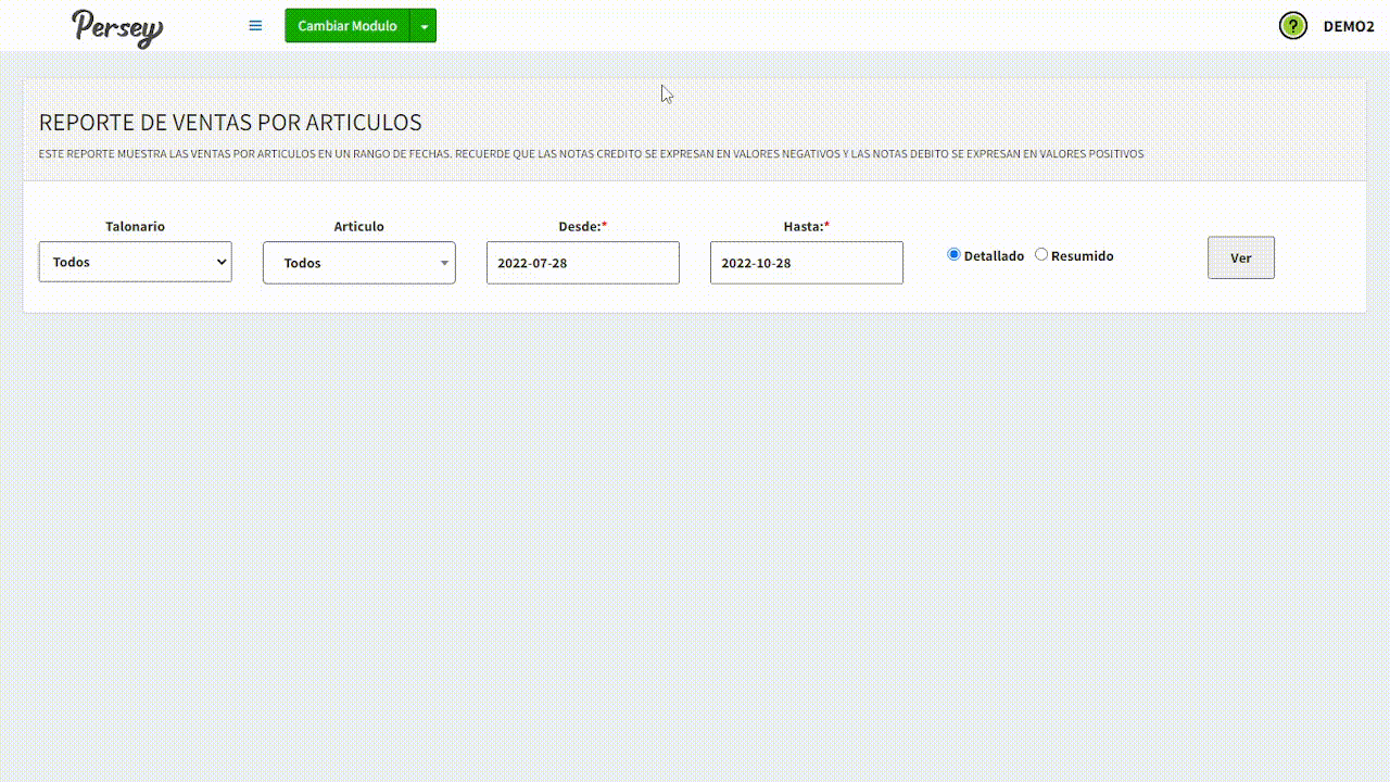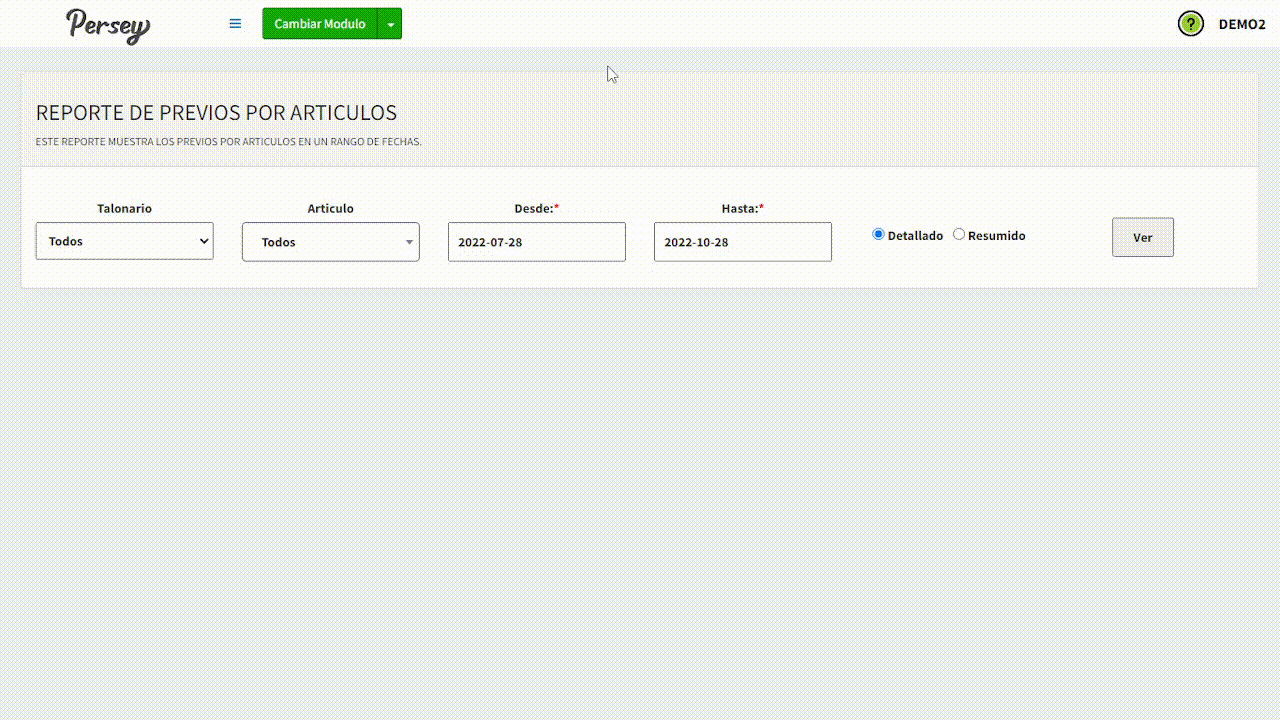 Para ver este reporte debe diligenciar el formulario , escoger el talonario, el articulo, la fecha desde-hasta y si quiere un reporte detallado o resumiodo luego darle click en el boton que dice "VER". Tambien puede descargarlo en PDF dandole click en el boton que dice "PDF"
