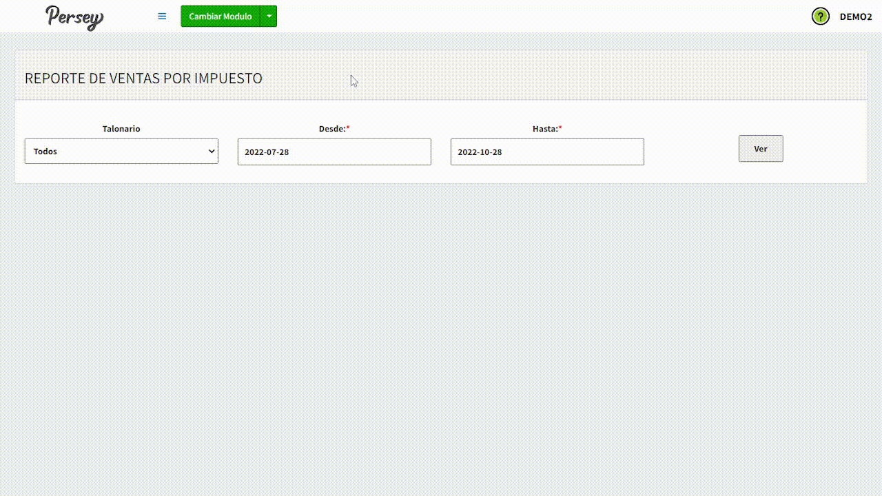 Para poder ver este reporte se debe diligenciar el formulario, escoger el talonario, la fecha desde-hasta y darle click en el boton que dice "VER". Tambien se puede descargar en PDF dandole click en el boton que dice "PDF".