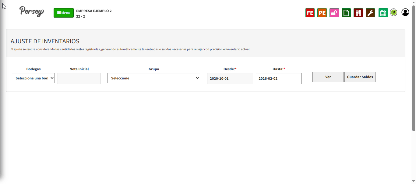 En esta sección podremos ajustar los saldos de los artivulos que pertenecen a una sola bodega, actualizamos y guradamos.