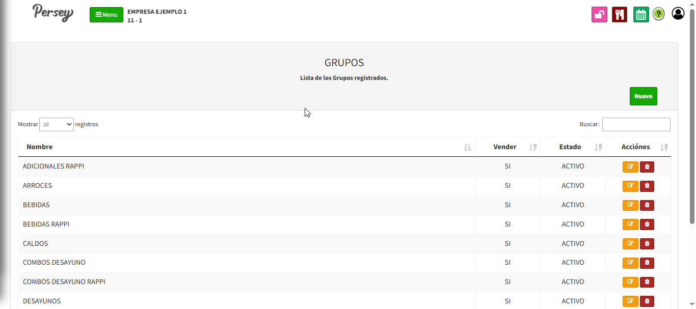 Para agregar un nuevo grupo de articulos debe darle en el boton que dice "NUEVO". Debe diligenciar el nombre del grupo, el estado Y darle click en el boton que dice "GUARDAR"