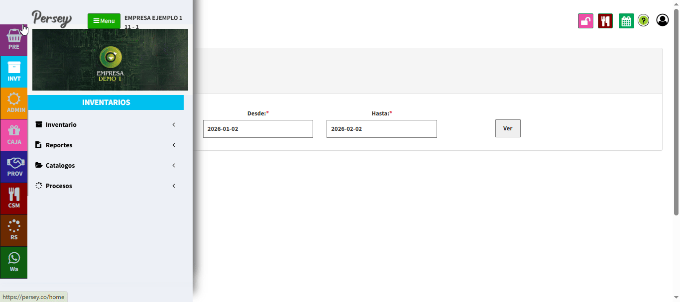En el menú lateral izquierdo va a encontrar todas las opciones que usted va a poder realizar en el aplicativo de Persey.