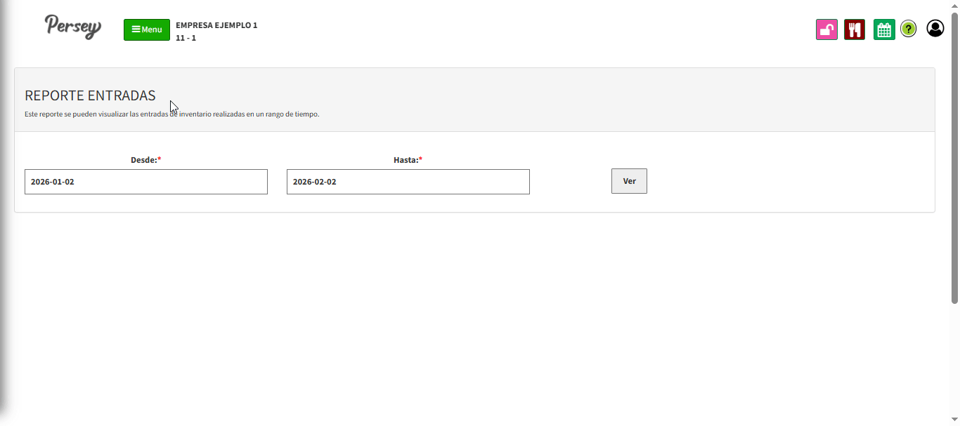 Podemos ver el reporte de entradas realizadas segun el rango de fecha que se necesite: