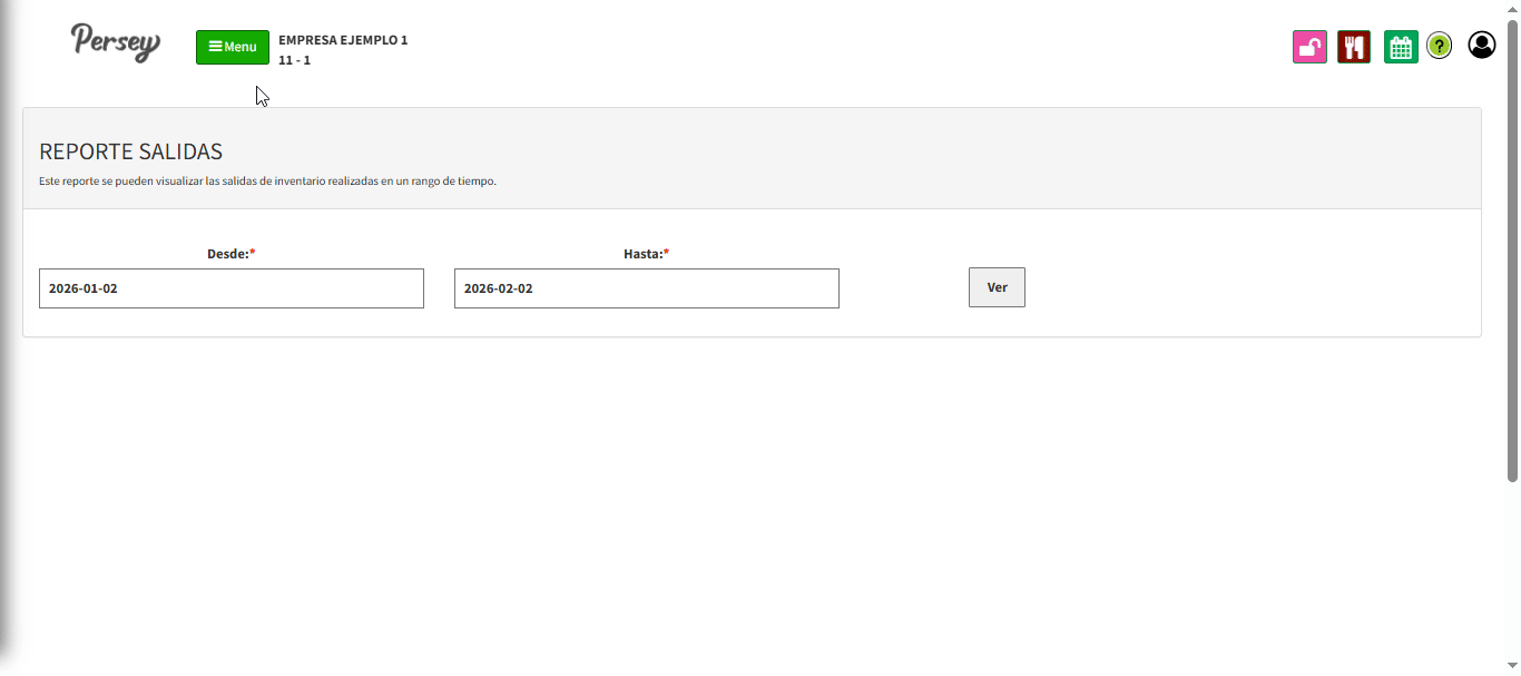 Podemos ver el reporte de salidas realizadas segun el rango de fecha que se necesite: