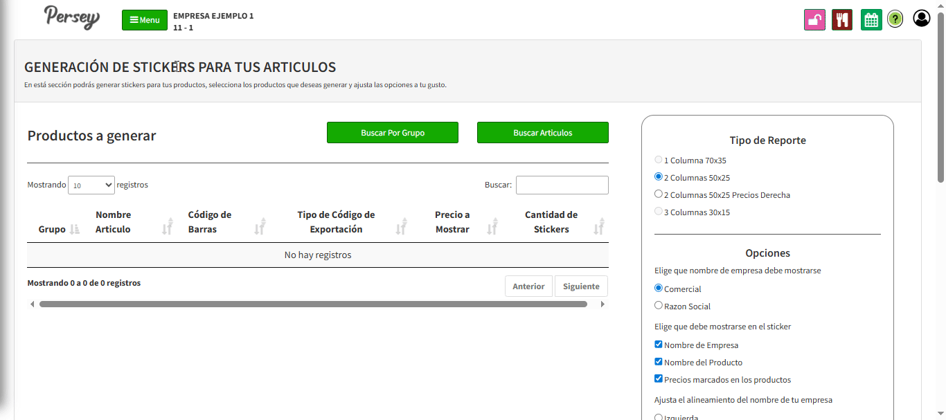 En está sección podrás generar un codigo de barras para tus productos, selecciona los productos que deseas generar y ajusta las opciones a tu gusto.