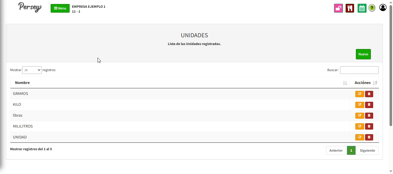 Para agregar una nueva unidad de medida debe darle en el boton que dice "NUEVO". Debe diligenciar el nombre de la unidad Y darle click en el boton que dice "GUARDAR"