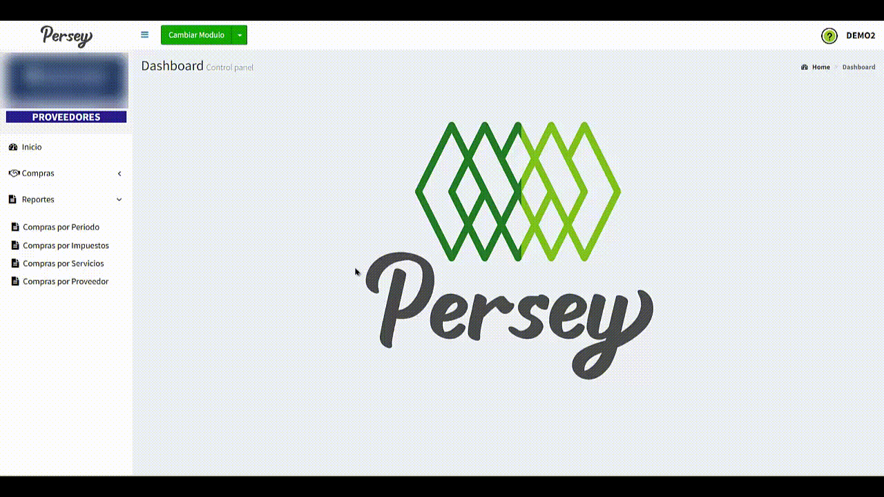 En el menú lateral izquierdo va a encontrar todas las opciones que usted va a poder realizar en el aplicativo de Persey.
